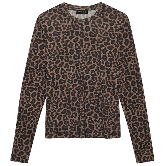 Elegant og cool langærmet bluse i en superfin, let gennemsigtig jersey med vintage-inspireret leopardprint. Blusen har en tætsiddende pasform, rund halsudskæring og lange ærmer. Den bløde uld- og tencelblanding giver en let og luksuriøs fornemmelse. Perfekt som et statement-piece alene eller under en blazer.