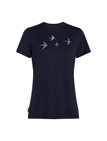 Icebreaker Women's Merino 150 Tech Lite SS Tee BIRD TRANSIT - Midnight Navy - Kortærmet uldtrøje
