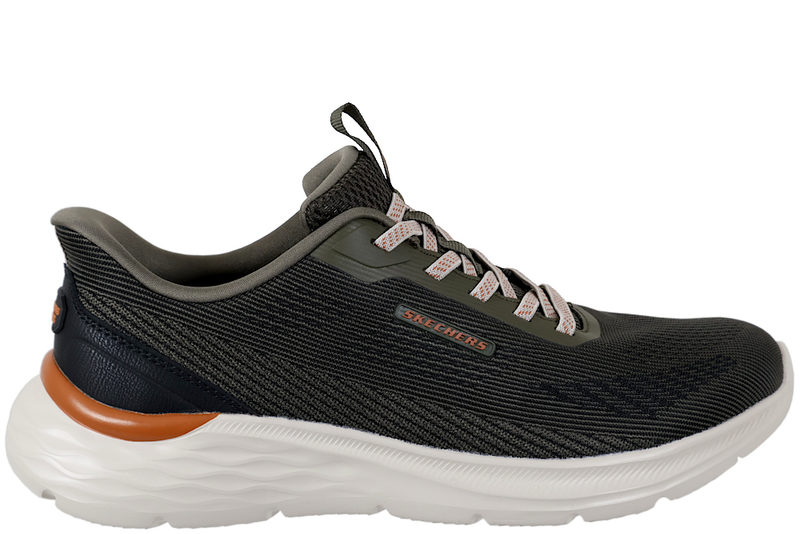 SKECHERS - GARNER ELLIS. Sneakers fra Skechers til herre i olivengrønt tekstil med olivengrønne detaljer. Foran er der elastik snørebånd, samt SLIP-INS i hælkappen, der gør den nem og komme i og af uden brug af skohorn. Indvendig er den foret med tekstil og har en Air-Cooled memory foam dæksål med svangstøtte, der giver en god komfort. Slidsålen er lavet af lys PVC. Modellen er Relaxed Fit. .. Læs mere på https://www.juul-sko.dk/herresko/herre-fritidssko/skechers-0-0-0-str46.htm