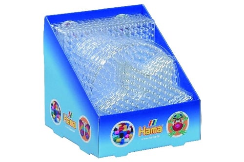 Stiftplader til Hama perler. Stiftpladerne fåes både som formstøbte firgurer og plader, hvor man kan lave sine egne mønstre og motiver.