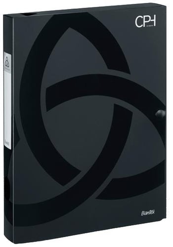 Bantex – CPH Copenhagen Dokumentlåda 40 mm\n\nSnygg och funktionell dokumentlåda i PP-material, 650 mµ, A4-format, 24 x 32 cm. Unik och exklusiv präglad design. Heltäckande svarta omslag som skyddar dina strategiska uppgifter. Enkel att stänga med tryckknappen. Ryggetiketten på 30×140 mm gör det enklare att hålla ordning. Fingerhål – rygg och undersida – för bra gripförmåga. Yttermått: 240 x 320 mm. Utformad för att skydda vid långvarig förvaring.