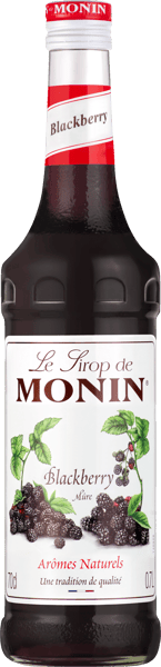 Monin Sirup med brombær har en silkeblød smag af modne brombær. Den franske kvalitetssirup er perfekt til cocktails som Bramble og Kir. For at lave sidstnævnte blander du den dybrøde Monin Sirup Brombær med kold hvidvin.