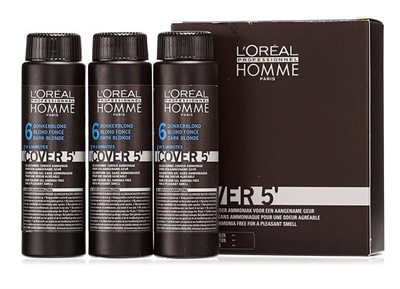 L'Oreal Homme Cover5 (6) 3X50ml ger den önskad hårfärg, ton och glans av ditt hår. Använd den för att täcka gråa hår eller för att få nyanser i din naturliga hårfärg. Hårfärg för män som enkelt och snabbt kamouflerar de första gråa hårstrån. Ton i tonfärg gelé utan ammoniak. Innehåller tre flaskor för tre behandlingar. Används i torrt / inte nykvättat hår. Använd handskar under behandlingen. Produkten måste blandas 1: 1, 50 ml färggel, 50 ml beize 6% (kan även köpas här), blanda den i en applikationsflaska och skaka väl tills en krämig gel kommer ut ur den, lägg den i håret och låt det fungera i 5 minuter (om längre färgen blir mörkare), efter 5 minuter masseras den in bra och håret och sköljs sedan ut. Tvätta håret som vanligt. OBS! Blanda inte i metallskålar