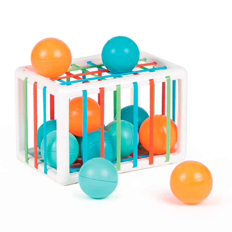 Sjov motorikkasse fra Ludi lavet med strimler af elastik, hvor de 12 medfølgende bolde skal puttes igennem. Nogle af siderne lader nemmere boldene slippe gennem hullerne end andre! Boldene fåes også ud igen gennem elastikhullerne. Legen styrker barnets finmotorik og logiske tankegang. Materiale: ABS og PE Måler 12 x 18 x 12 cm Fra ca 10 mdr Se alle varer fra Ludi