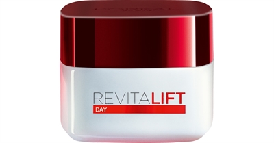 L'Oréal Revitalift Day Cream 50 ml skyddar huden mot föroreningar, sol, kyla och uttorkning från t. ex. luftkonditionering eller datorskärmar. Denna dagkräm är lätt att applicera och absorberas snabbt i huden. Genom att applicera en nattkräm i samma serie som dagkrämen får huden nya tillförsel av aktiva ingredienser och effekten förstärks. L'Oréal Revitalift Day Cream 50 ml stärker hudens elasticitet på djupet, vilket gör att produktionen av kollagen och elastin ökar .
