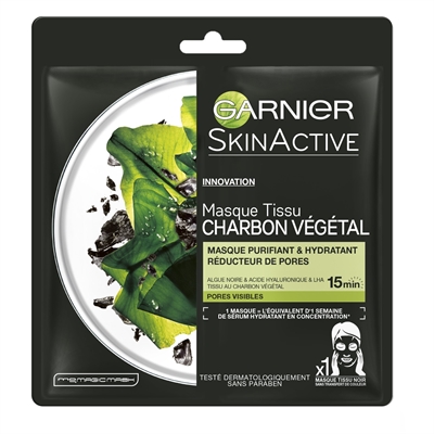 Garnier Skinactive Pure Charcoal Tissue Mask är ett komplement till den dagliga vården. Den hjäper till att förbättra ytan på din hud och du ser resultatet direkt. Garnier Skinactive Pure Charcoal Tissue Mask passar dig som har torr och känslig hud och som önskar en effektiv lösning för att återfukta och lugna huden. Denna tissue-mask på bara 20 minuter återfuktar den huden intensivt. Verkan När masken läggs på ansiktet fungerar den som en fuktkompress som fördelar serum till huden och omedelbart får den att kännas lugnad. Kulstof fungerar som en magnet för att rengöra och dra samman porer och kontrollera talgmängden. Denna hudvårdsformula, som innehåller kol av naturligt ursprung som är känt för sina absorberande egenskaper, öppnar tilltäppta porer och reducerar synligt pormaskar.