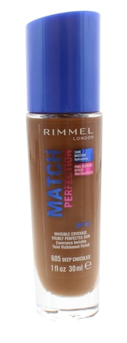 Få en perfekt bas med den silkeslena Rimmel Match Perf Found Deep Chocolate. Produktens lätta formel fördelas naturligt och ger en vacker, halvmatt finish. Denna flytande foundation är lätt att applicera och ger dig lyster och en strålande hud som håller hela dagen samtidigt som den jämnar ut din hudton.