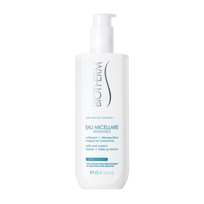Biotherm Biosource Eau Micellaire 400ml Cleanser + Make Up Remover- All Skin Types Even Sensitives om du vill ha ett supereffektivt, snabbt och behagligt rengöringsvatten som både tar bort makeup och tillför din hud lyster. Den rengör ar bort makeup och får din glåmiga och trötta hud att stråla. Avlägsnar orenheter genom miceller, och huden bibehåller därigenom sin balans. Innehåller aktiva ingredienser som förhindrar irritation, och din hy känns genast ren, fräsch och avslappnad. Biotherm Biosource Eau Micellaire 400ml Cleanser + Make Up Remover- All Skin Types Even Sensitives ansiktet och runt ögonen utan att störa hudens naturliga balans. Resultat: En hud som känns ren, mjuk och bekväm. En lysande hy.