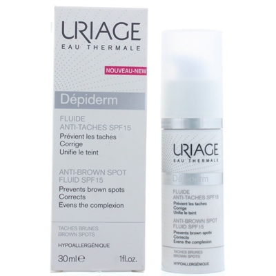 Lider du av problemhud? Upplever du extra problem i pannan, näsan eller på kinderna? Uriage Dépiderm Anti-Brown Spot Fluid SPF15 30ml är speciellt formulerad för att hjälpa till med rodnad, blank hud, märken, ojämn hudton och förstorade porer.