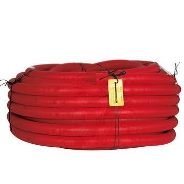Hekaplast rød, indvendig glat og udvendig korrugeret PEH-rør, anvendes som trækrør til kabler primært nedgravet i jord. Leveres med træksnor og muffe.