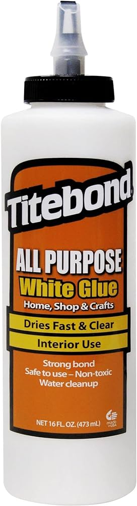 Titebond All purpose glue Hvid limEn alsidig formel i professionel kvalitet nu tilgængelig for både hobbyister, håndværkere og skolelærere! Det giver stærk indledende klæbeevne, fremragende styrke og et hurtigt sæt på træ, papir, stoffer, keramik og meget mere! Titebond All Purpose White Glue er sikker at bruge! Det er ikke-giftigt, renser op med vand og overholder ASTM D4236. Ydeevne plus sikkerhed gør denne lim til et godt valg til mange indvendige applikationer.