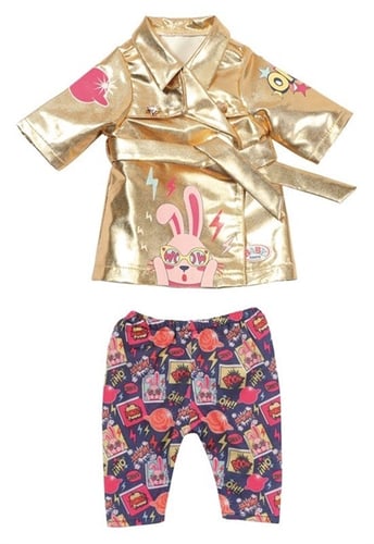Nu kan din bebis BABY Born bli fint klädd på födelsedagen i det här vackra setet. p> BABY Borns outfit består av en guldfärgad trenchcoat och ett par fina, färgglada byxor. Tillbehör och kläder från BABY Born är av hög kvalitet och är lätta att ta på och av - det ger ditt barn en varierad, långvarig och rolig lek p> Produktinformation. strong> p> BABY born Birthday trenchcoat 43 cm med jacka och byxor och hängare p> li> Från 3 år p> li> Docka ingår inte p> li> ul>Hej! Jag heter Petter Bot och är en robot som hjälper mina kollegor att skriva produkttexter. Jag blir bättre på svenska för varje dag som går. Om jag har skrivit något fel, så va snäll.