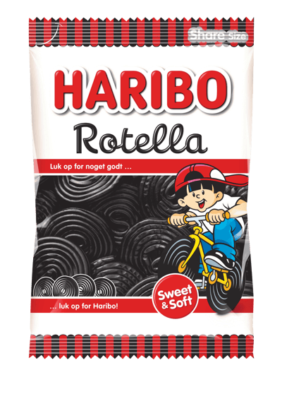 Haribo Rotella er de klassiske lakridshjul, som er dejligt søde og bløde at bide i, hvad enten du ruller lakridsbåndet ud før, du spiser, mens du spiser, eller simpelthen tager en ordentlig bid på tværs af hjulet.