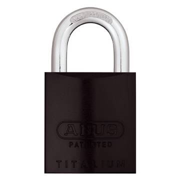 Sort aluminium hængelås med Snowman cylinder i DK-profil og hærdet stålbøjle.