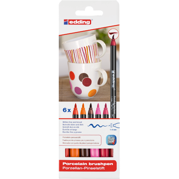 EDDING 4200 Porcelænstusser, 1-4mm sæt 6 varme farver