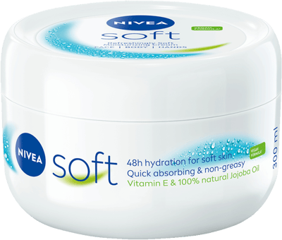 NIVEA Soft er en intensivt fugtgivende creme til daglig brug. Den lette formel med vitamin E og 100 % naturlig jojobaolie giver 48 timers intensiv hydrering, og cremen absorberes hurtigt af huden.