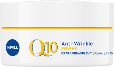 NIVEA Q10 Power Firming Day Cream med SPF15 er en dagcreme, der intensivt plejer og fugter huden og reducerer rynker, så huden føles blød og fastere. Indeholder dobbelt kollagenbooster med ren Q10 og kreatin samt hyaluronsyre.NIVEA Q10 Power Firming Day Cream med SPF15 er en dagcreme med rig tekstur, der nærer og fugter huden intenst og giver en øjeblikkelig blød og glat fornemmelse. Cremen indeholder dobbelt kollagenbooster med ren Q10 og kreatin samt hyaluronsyre. Q10 booster hudens kollagen og korrigerer rynker indefra (testet på hudceller). Kreatin er kendt for at give øjeblikkelig energi til hudcellerne og et ekstra boost til kollagenproduktion og elastin (testet på hudceller). Hyaluronsyre giver fylde og binder fugt i huden. Oplev denne NIVEA-dagcreme med klinisk dokumenterede resultater (videnskabelige undersøgelser af hudens elasticitet, fugt, rynkevolumen, regenerering, 32-45 kvinder, 2020-2023) - Fastere hud for 79 % af kvinderne på 7 dage, huden er dybt fugtet for 94 % af kvinderne på 2 uger, reducerer rynker for 100 % af kvinderne på 4 uger og genopbygger huden for 74 % af kvinderne på 4 uger! Denne dagcreme er dermatologisk testet og velegnet til alle hudtyper.