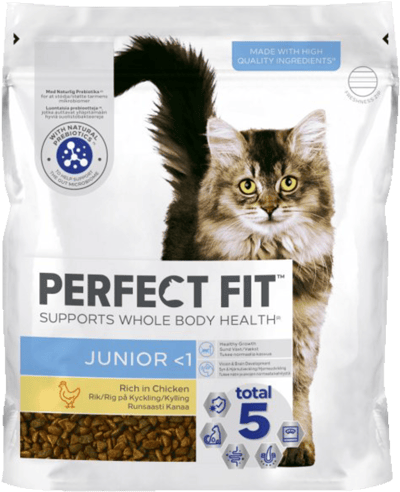 Perfect Fit Junior Reich an Huhn er lækkert tørfoder med masser af fjerkræ til killinger i voksealderen, op til 1 år. Indeholder alle vigtige næringsstoffer, mineraler og vitaminer, som er vigtige for en sund vækst og knogleudvikling.