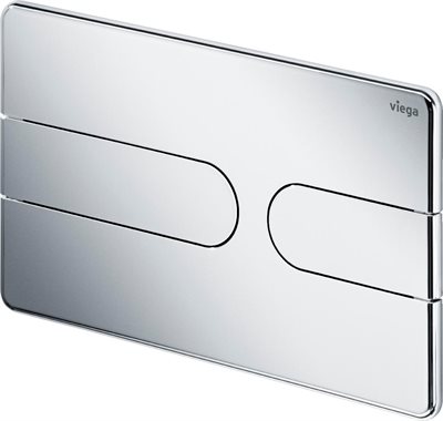 Formen på denne betjeningsplade er nærmest som en smartphone, der giver en svævende fornemmelse over væggen. Det flotte design er tidløst med bløde softgeometriske former. Trykknappen passer som de øvrige til alle Viega Prevista Dry indbygningscisterner.