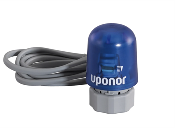 Termoelektrisk 24 V 2 W til Vario B fordelerrør. Med funktionsindikator. Strømløst lukket. Monteres på gulvvarmefordelerrørets fremløbsventil.