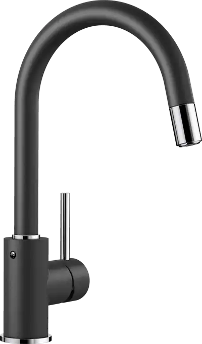 BLANCO Mida køkkenvandhane i antracit der giver et moderne look. Indret dit køkken med dette flotte og moderne køkkenarmatur fra BLANCO. Få masser af personlighed med farven antracit i dit køkken. Fremstår rå og elegant på samme tid. Køkkenarmaturets mange smarte og praktiske funktioner giver stor brugervenlighed og komfort, når køkkenopgaverne ved og omkring køkkenvasken står på. Svingtuden har ligeledes en svingradius på 360 grader, så der er god bevægelighed ved vaskens arbejdsområde.