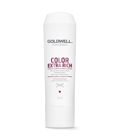 Det er alltid viktigt att använda balsam efter att du har tvättat ditt hår med shampo. Genom att använda balsam tillför du fukt och vårdar ditt hår. Ett balsam innehåller många olika ingredienser som ger fukt och näring till ditt hår, vilket gör ditt hår mjukt och förhindrar tovor. Goldwell Dual Senses Color ExtraRich Conditioner 200ml For Thick To Coarse Hair förseglar färgpigmenten i håret och skyddar färgat hår. Färgens intensitet bevaras längre. Håret blir mjukt och fullt av glans.