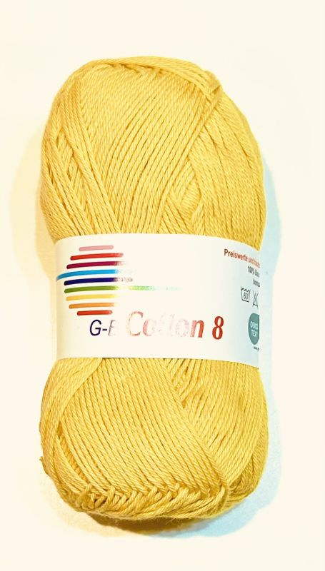 Majsgul bomuldsgarn – solskin til dine strikkeprojekter Vi er helt vilde med denne majsgule bomuldsgarn i 8/4 kvalitet. Den lette og bløde kvalitet gør den oplagt til alt fra sommerbluser og karklude til børnetøj og håndklæder – især til det, der bliver brugt og elsket igen og igen. Den varme farve sender tankerne hen på smørblomster og solskin på pindene hos os. Materiale: 100 % bomuld Løbelængde: ca. 170 meter / 50 gram Anbefalet nål: 2,5 – 3,5 mm Strikkefasthed: 24 masker Vask: Maskinvask 60°C / Tørres fladt Farve: 1472 Majsgul