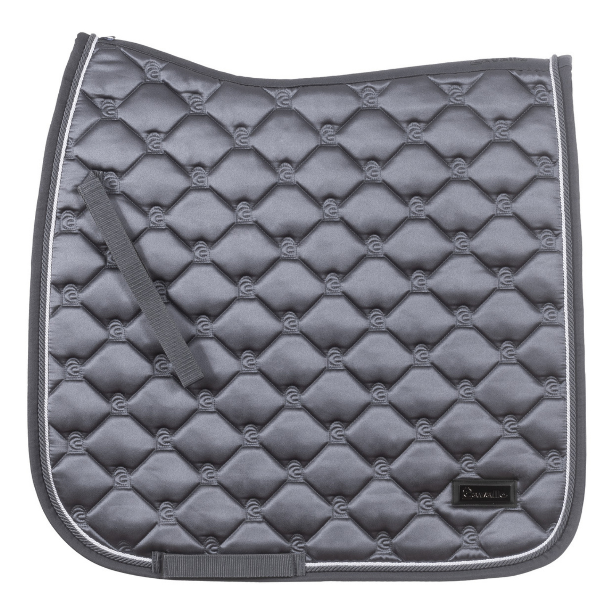 Cavallo Hanaya schabrack Et eksklusivt og stilfuldt dressurunderlag fra Cavallo, designet til rytteren der ønsker både kvalitet og elegance. Underlaget har en skinnende overflade med dobbelt piping langs kanten, som giver et luksuriøst og sofistikeret udtryk. På begge sider prydes underlaget af et Cavallo metalmærke i metallook, der understreger det eksklusive design. Den smukke quiltning med integreret Cavallo-logo kombineres med en blød og fyldig polstring, som giver optimal komfort for hesten. Gjordstropper med velcro sikrer, at underlaget bliver liggende stabilt under ridning, mens den hudvenlige underside med mesh sørger for god åndbarhed og fugttransport. Farve: Stål Grå