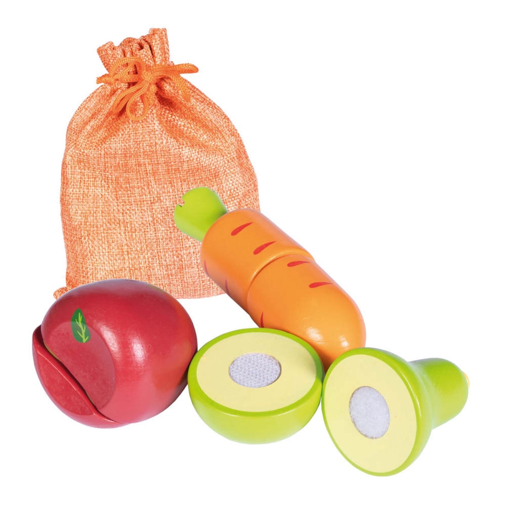Farverigt udvalg af æble, pære og gulerod Træ Artikler til Hobby hest / køphesten Let at adskille eller kombinere med velcro i midten af legetøjet OBS: Ikke egnet til børn under 3 år