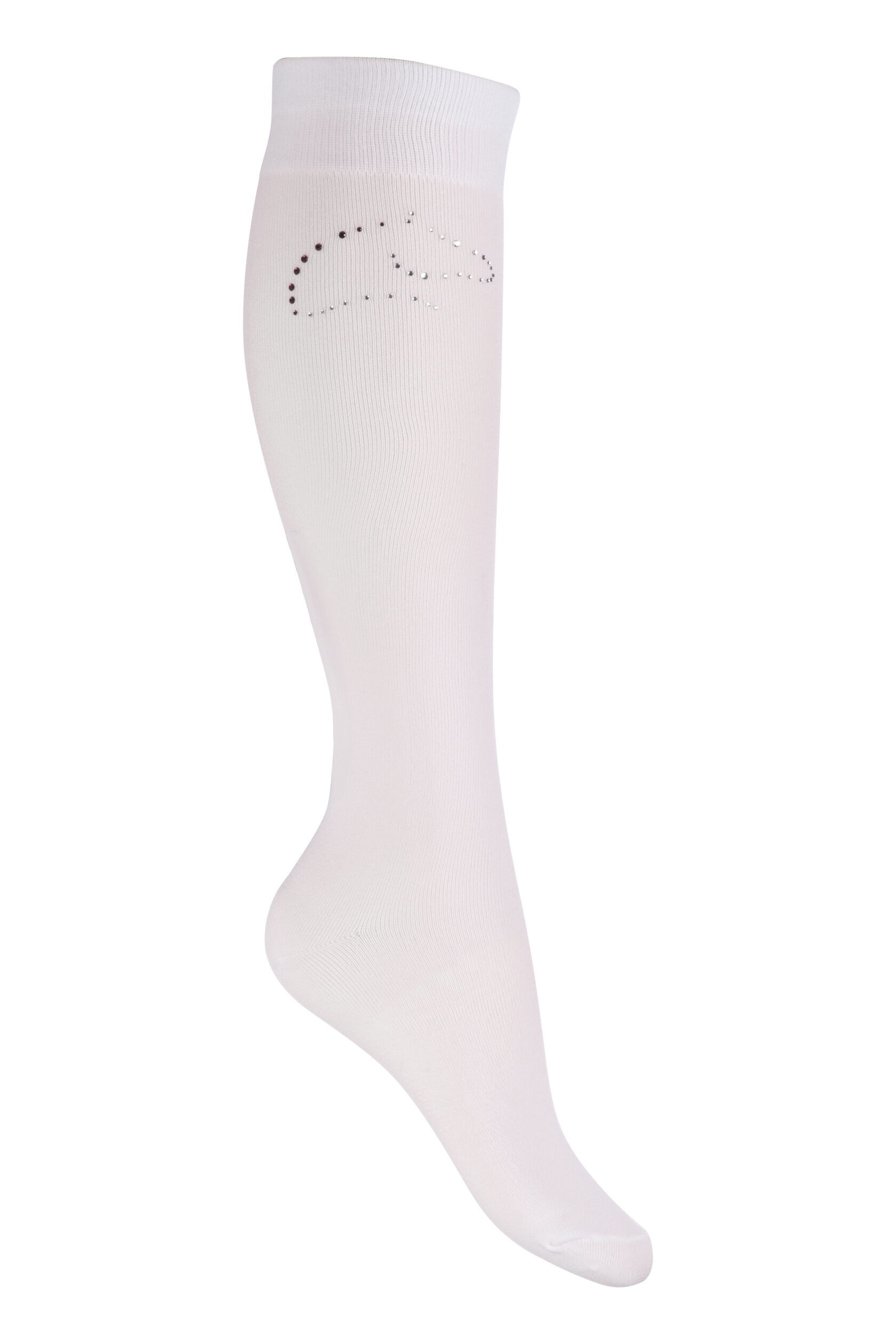 Optimal Komfort: Den tynde og glatte kvalitet sikrer, at dine tætsiddende ridestøvler glider let på, uden at strømperne folder eller gnaver. Perfekt Pasform: Kombinationen af nylon og elastan sørger for, at strømperne bliver siddende hele dagen og bevarer deres form vask efter vask. Elegante Detaljer: De røde og sølvfarvede krystaller tilføjer et personligt præg, der skiller sig ud fra mængden. Farve Hvid med krystaller i rød/sølv Materiale 97% Nylon, 3% Elastan Pleje Maskinvask ved 30°C (Skånevask anbefales