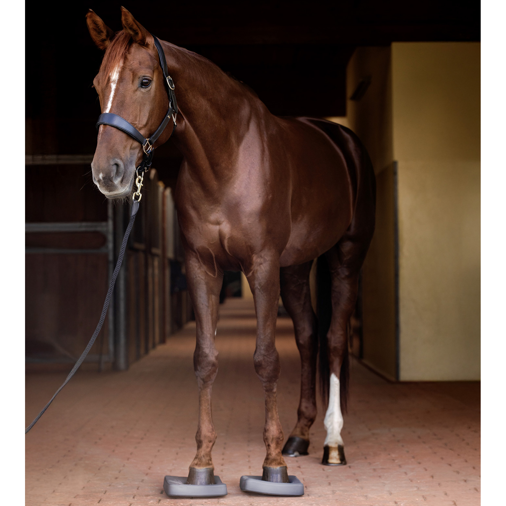 Waldhausen Balance Pads – Styrk din hests balance og koordination Giv din hest de bedste forudsætninger for en stærk krop med Waldhausen Balance Pads. Disse specialudviklede pads er det perfekte redskab til proprioceptiv træning, hvor hesten lærer at mestre sin kropskontrol, balance og muskelspænding på et blødt og eftergivende underlag. Uanset om du har en unghest, der skal lære at finde balancen under rytter, eller en erfaren sportshest, der har brug for optimeret koordination, er balance pads en værdifuld investering i hestens fysik. Hvorfor vælge Balance Pads? Dybdegående muskeltræning: Aktiverer de små, stabiliserende muskler, som ofte overses i den daglige ridning. Forbedret kropsbevidsthed: Hesten bliver mere opmærksom på sine egne bevægelser og vægtfordeling. Alsidig anvendelse: Gavner alle heste uanset alder, disciplin og træningsniveau. Kontrolleret styrke: Træningen foregår roligt og kontrolleret, hvilket opbygger sund kropsspænding. Anvendelse og gode råd Balance-træning er yderst effektivt og derfor også anstrengende for hesten. Vi anbefaler en langsom opstart: Hyppighed: Maksimalt 1-2 gange om ugen. Vigtigt: Har din hest en historik med skader eller fysiske udfordringer? Konsultér altid din dyrlæge eller kiropraktor, før du påbegynder træningen. Specifikationer Antal: Sælges som et sæt (2 stk.) Mål: 30 x 25 x 5 cm Tilbehør: Leveres i en praktisk mesh-taske til nem opbevaring og transport.