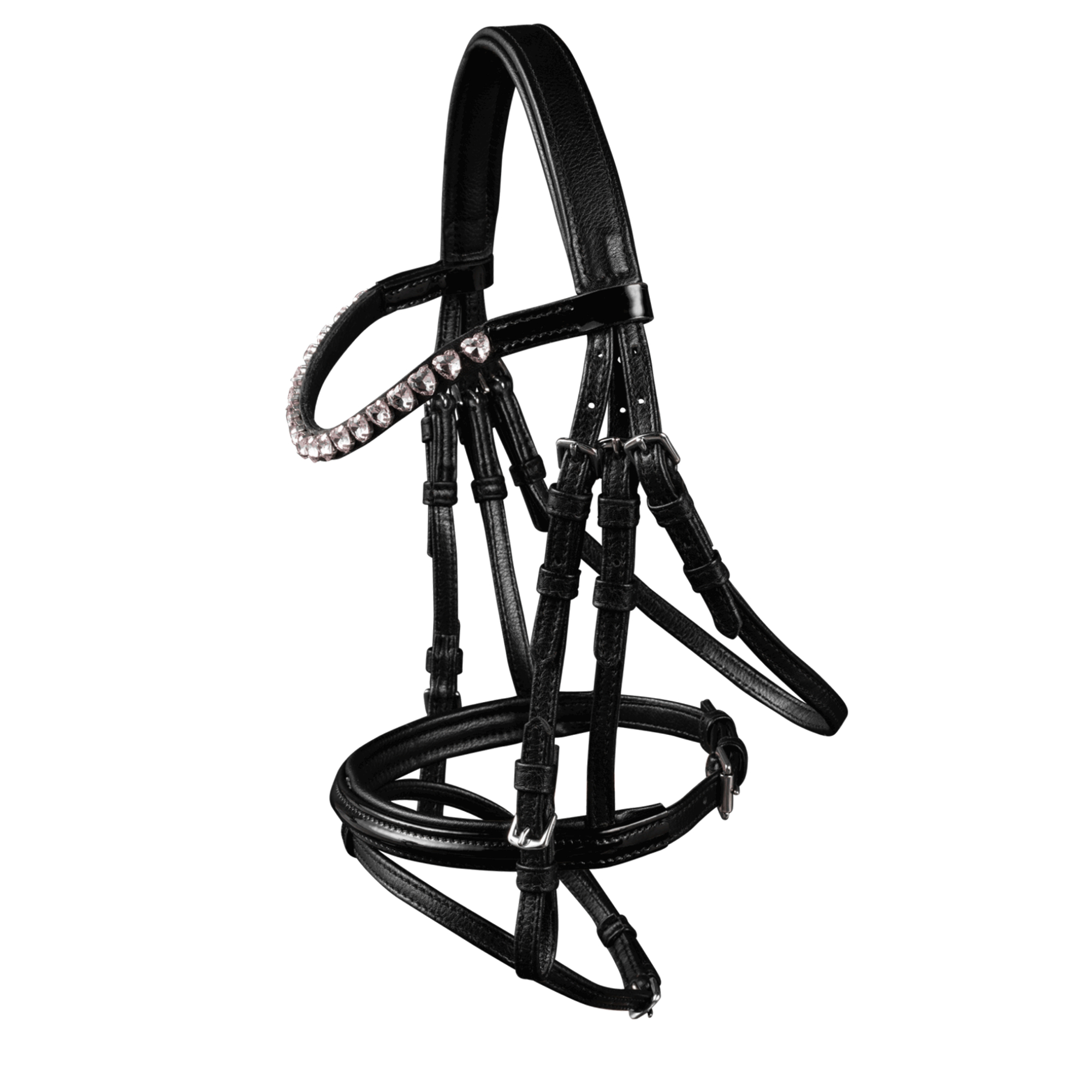 Den søde Happy Hearts trense kombinerer funktionalitet og legende design – perfekt til ponyer og unge ryttere. Trensen er fremstillet i et slidstærkt, plejelet syntetisk materiale og har fine detaljer, der gør den både praktisk og charmerende. Engelsk kombineret næsebånd Lige nakkestykke for god komfort Pandebånd med lak-kant og små lyserøde hjerter Næsebånd med lakdetalje Blødt foret næsebånd og pandebånd for ekstra komfort Fremstillet af plejelet syntetisk materiale 16 mm webtøjler medfølger