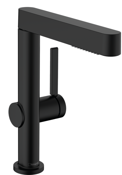 Hansgrohe Finoris 1-grebs håndvaskarmatur 230 med udtræksbruser, 2jet og push-open bundventil, Mat sort
