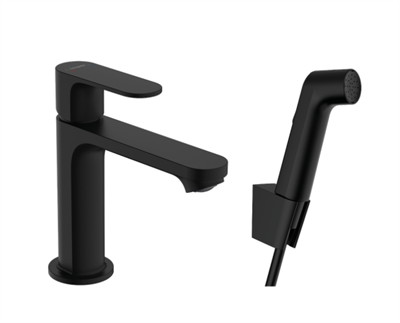 Hansgrohe Rebris S håndvaskarmatur 110 med håndbruser og bruserslange 160 cm uden bundventil mat sort