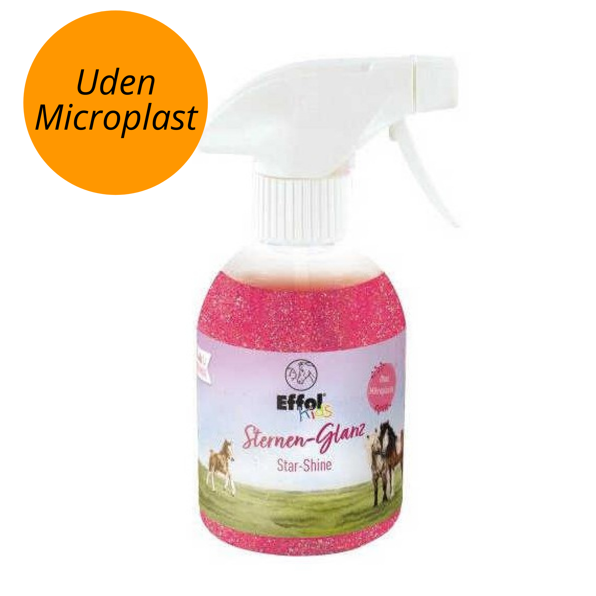 Effol Kids Star Shine – Glitterspray med hindbærduft Effol Kids Star Shine er en langtidsvirkende glitterspray, der giver din hest et magisk look. Den kan bruges i pels, man og hale og er helt ufarlig for både hest og rytter. Sprayen dufter skønt af hindbær og indeholder sølvglitter, som gør den helt unik. Perfekt til stævner, shows eller andre særlige anledninger, hvor din hest gerne må stråle lidt ekstra.