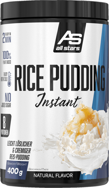 Rice Pudding Instant Powder er fremstillet af 100 % rismel og giver dig hurtig energi til hverdag og træning. En portion (50 g rispulver) indeholder med mere end 40 g et kulhydratindhold på 80 %, med kun 0,25 g sukker, 0,1 g fedt, 4 g protein og fibre. Det gør instant-risbuddingen til en hurtig energikilde under træning, eller når du bare har brug for en portion energi mellem måltiderne eller om morgenen. Rice Pudding Instant kan beriges med andre ingredienser frugt, nødder, Flavor Drops eller Flavor Powder alt efter personlige præferencer.