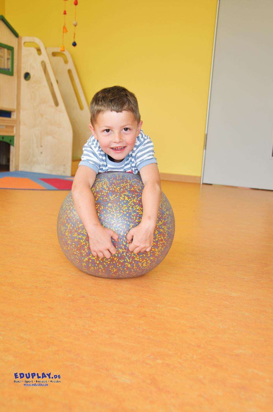 Stor og sjov bold, der er fyldt med konfetti. Bolden er fascinerende at trille og kaste med, da den rasler dejligt, og man kan se konfettien, der hopper rundt inde i bolden. Størrelsen på bolden går, at barnet også kan lægge kroppen indover den. Leg med konfettibolden styrker: Hånd- og øjekoordination Kaste og gribe øvelser Koncentration Balancen Om bolden Materiale: Gummi og kunststof Mål: Ø. ca 40 cm Alder fra 1 år Bolden sendes UDEN luft i. Den kan pumpes op med håndpumpe eller kompressor med boldnål.