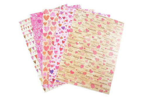 HOBBY2YOU Papir selvklæbende A4 Romance - 5 ass i pk