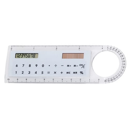 Linjal med solcellsdriven miniräknare och förstoringsglas (10 cm) 143749, Svart
