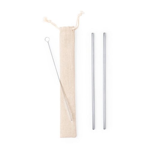 Återanvändningsbart sugrör Rostfritt stål (2 Pcs) 146282, Silvrig