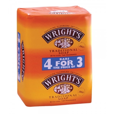 BeskrivningWrights tvålstång 4 för 3 125gm har en något skummande formel som rensar huden utan att ta bort hudens naturliga fetter. Blir ett utrymme för skönsmässig bedömning, mildt skum som inte torkar ut huden.Innehåll4