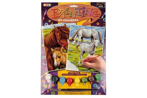 Mal efter tal, sættet indeholder maling og pensel.Pensel rengøres i vand.