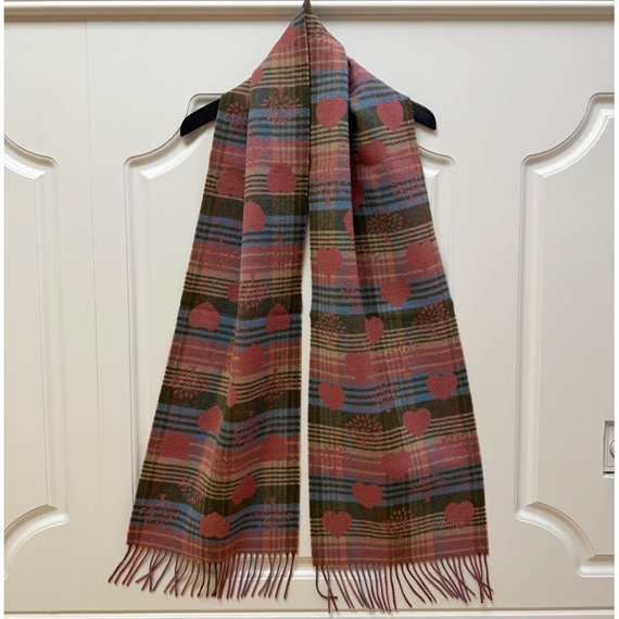 Mulberry Heritage Check & Heart Scarf Moss-Pink Scrum