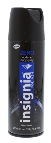 Insignia 200ml Body Spray Zero motverkar effektivt dålig lukt och ger en långvarig känsla av komfort och renhet. Applicera på ren och torr hud under armarna. Lämplig för daglig användning.