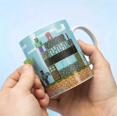 Produktbeskrivning Do you wish you could play Minecraft in the office? well, now you can do the next best thing by building your own level on the outside of this 325ml (11floz) Minecraft mug which comes with 4x sheets of Minecraft stickers. The stickers included are of blocks and characters from this classic game and what's more, the stickers can be repositioned time and time again, so you can play for hours, building a different level each time. Supplied in a full-colour gift box, this build your own level mug is the ideal gift for Minecraft fans of all ages. Officially licensed and 100% ceramic this mug is sure to put a smile on any Minecrafters face. It is also a great piece of memorabilia for anyone who collects Minecraft merchandise. Minecraft is a sandbox video game first released in 2011 and is the single best-selling video game of all time with sales of over 180 million copies, across all platforms, to date. Players explore an intentionally blocky, pixelated 3D world, to discover and extract raw materials, craft tools, build structures or earthworks. Depending on the game mode, players can fight computer-controlled monsters and either cooperate with or compete against other players in the same world.
