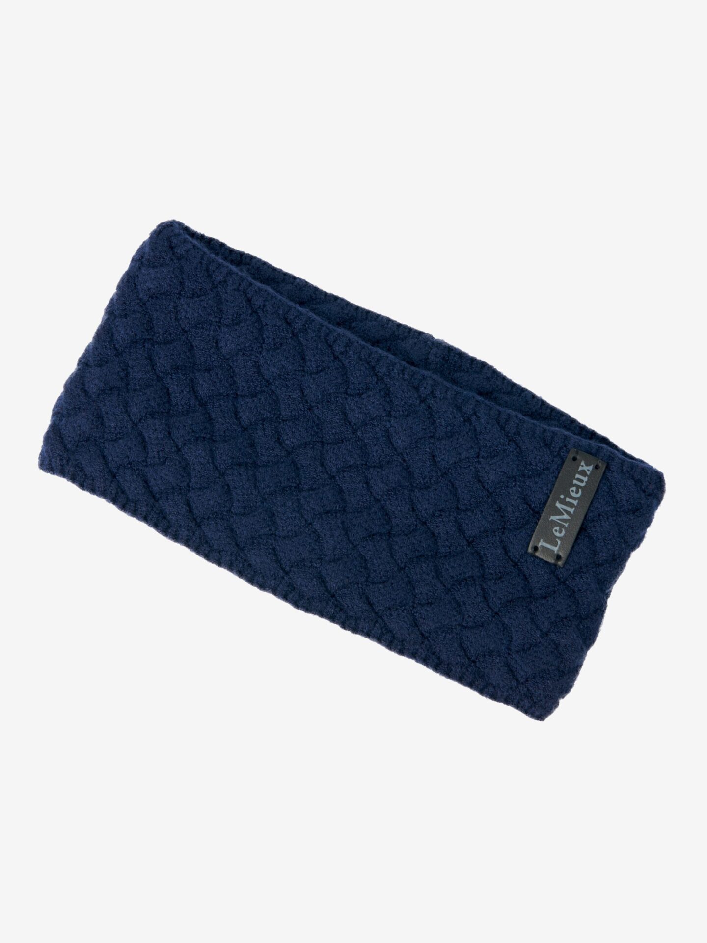 LeMieux Cable Knit Pandebånd er lavet med et subtilt kabelstrikmønster og præget med PU-læder med LeMieux-branding. Foret med en super blød mikrofleece for ekstra varme og komfort. Let elasticitet for en sikker, tæt pasform. Farve: Navy