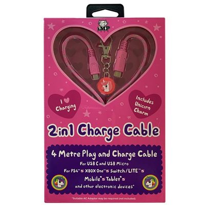2in1 4 m rosa laddkabel med enhörning charm Rosa