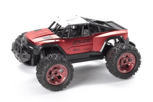 R/C Rude Off-Road 1:12 2,4GHz Metallic RedSuper fed 1/12 off-road bil fra TechToys, der er 2 forskellige modeller, ”Killer” og ”Rude”.Begge biler er med den nyeste type fjernstyring, 2,4Ghz, super frække off-road dæk, som giver maksimalt vejgreb, og sidst men ikke mindst, er bilen leveret med et stort genopladeligt batteri på 7,2V 500Mah, og USB oplader.Tekniske Data: Længde: 34cmHøjde: 15cmBredde: 24cmFrekvens: 2,4GHzHastighed: max 20km/tBatterikrav:Modellen: 7,2 V 500Mah NI-MH (medfølger i Modellen)Fjernstyringen: 3 x AA (medfølger ikke)Anbefalet alder: +8år