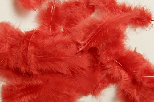Fjer/dun til dekoration måler imellem 5 og 8 cm.