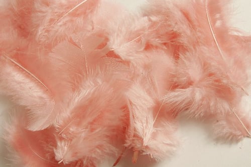 Fjer/dun til dekoration måler imellem 5 og 8 cm.